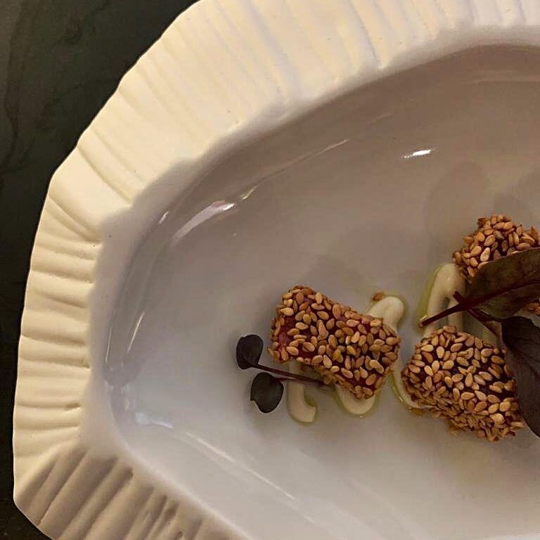 Tonno rosso pinna gialla, salsa al lime, arancia canditaOne Shot